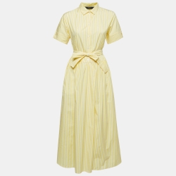 Weekend Max Mara Yellow Striped Cotton Belted Shirt Dress S