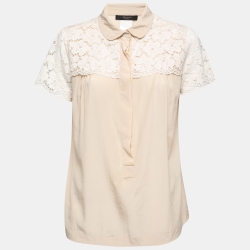 Weekend Max Mara Beige Silk & Cotton Overlay Collared Top L