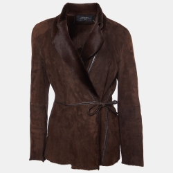 Weekend Max Mara Brown Suede & Fur Lined Wrap Tie Jacket M