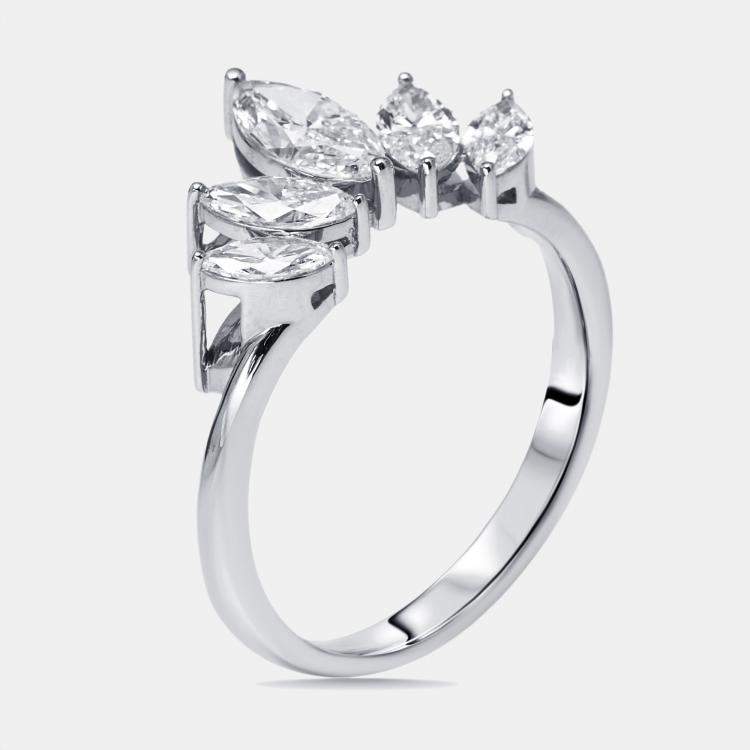 Pre Owned 1 ct Marquise Lab Grown Diamonds 18k White Gold Ring Size 52