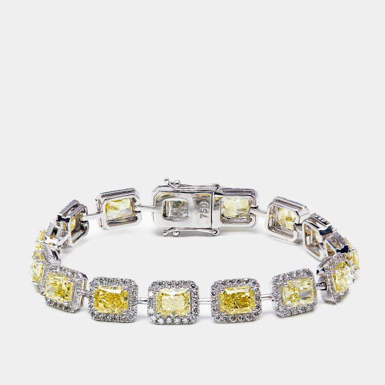 Pre Owned 18.4 cts Intense Yellow Radiant Round Lab Grown Diamonds 18k White Gold Bracelet