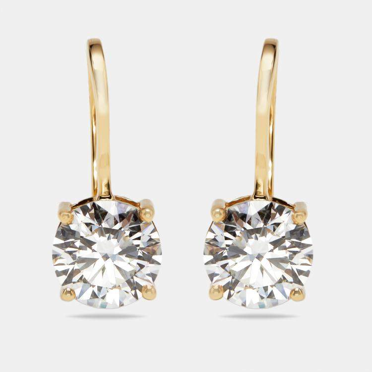Pre Owned 2 cts Round Lab Grown Diamond 18k Yellow Gold Earrings