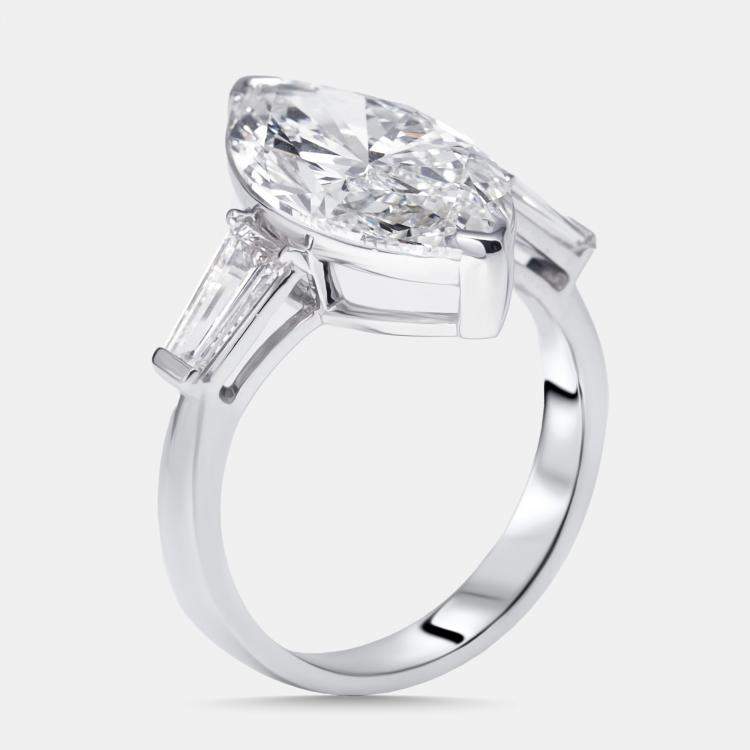 5.9 cts Marquise, Trapezoid Lab Grown Diamonds 18k White Gold Ring Size 52