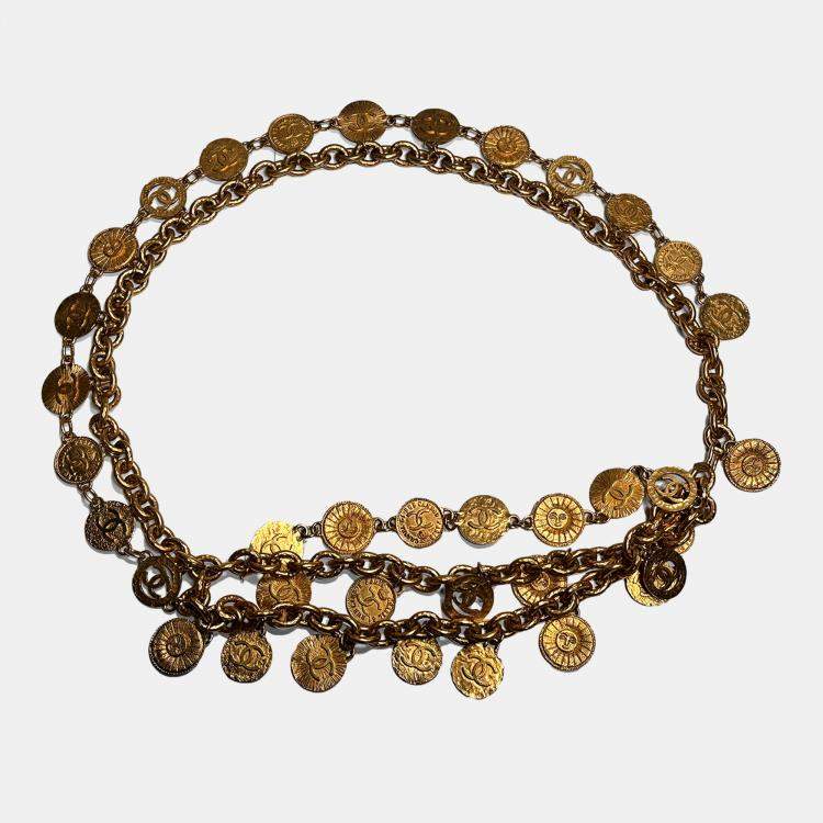 Pre Owned 93P Vintage Layered Coin Medallion Double Chain Belt (90cm)