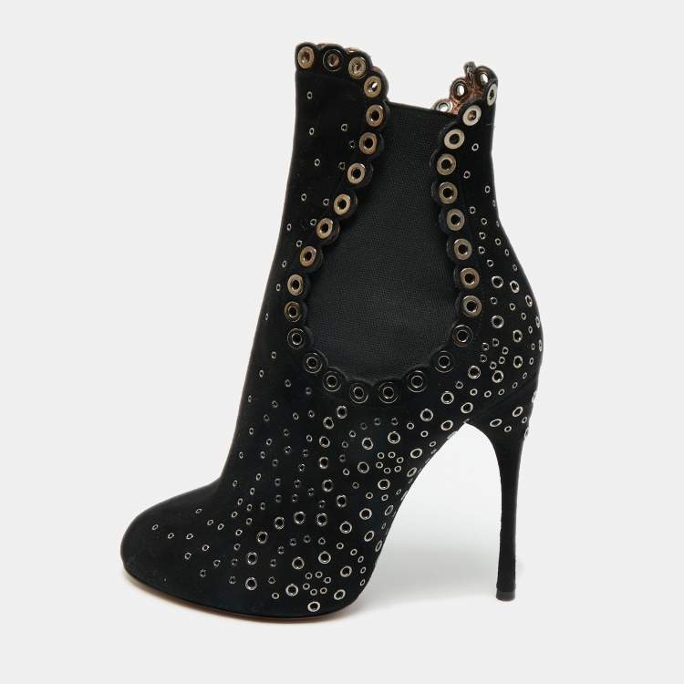 Alaia Black Suede Gomet Embellished Ankle Boots Size 39