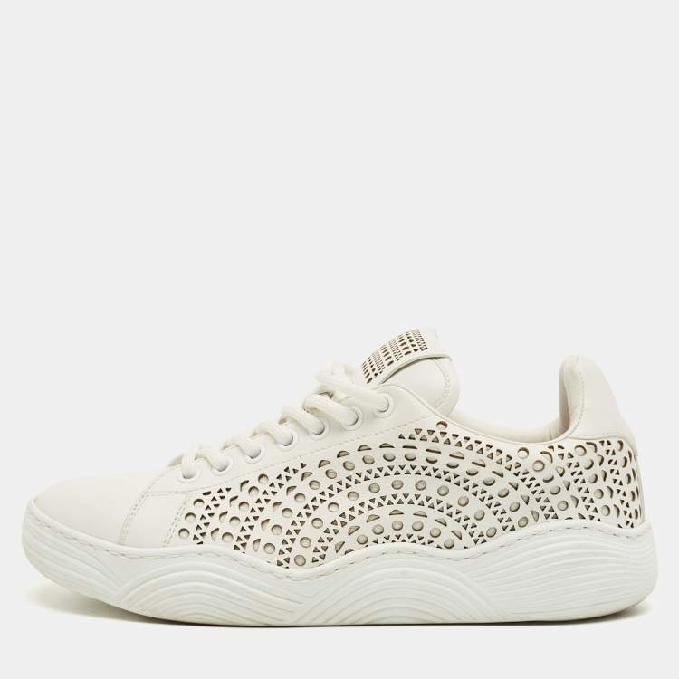 Alaia White Leather Vienne Laser Cut Out Low Top Sneakers Size 37