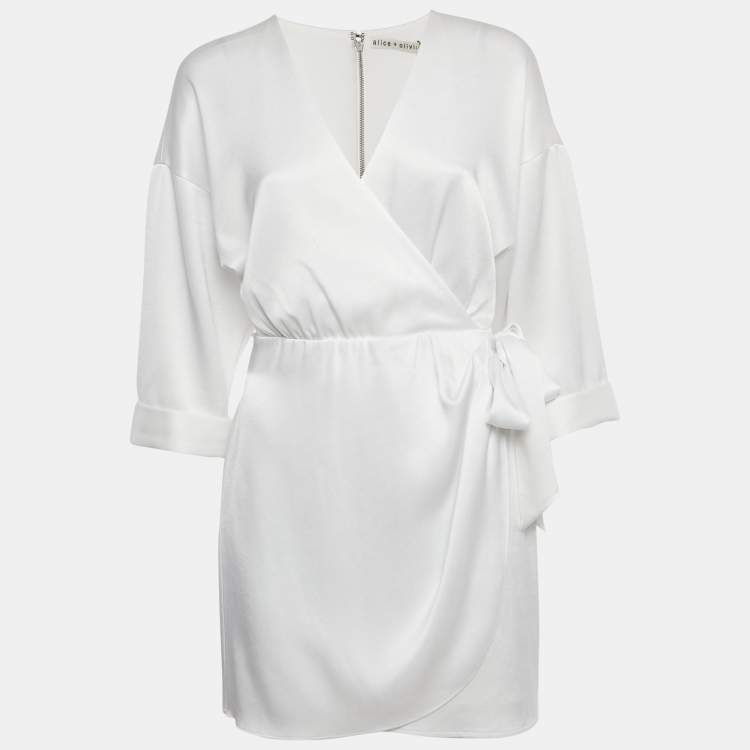 Pre Owned Alice + Olivia White Satin Tie Detail Mini Dress M