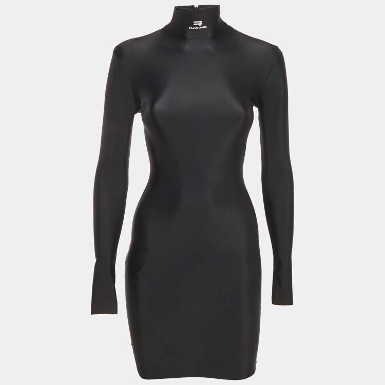Balenciaga Black Jersey High Neck Bodycon Dress S