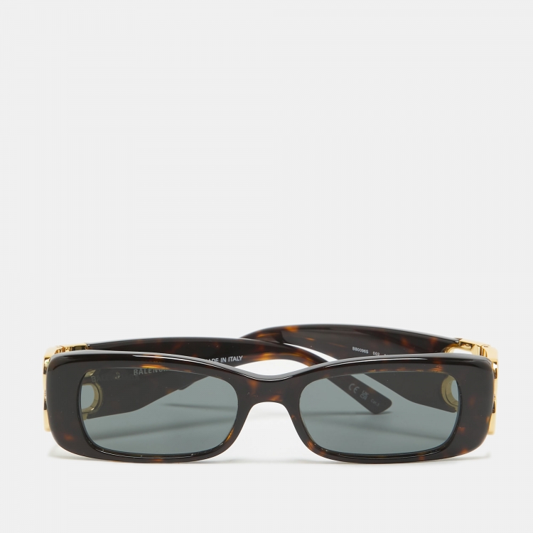 Pre Owned Balenciaga Dark Brown Tortoise BB0096S Rectangle Sunglasses