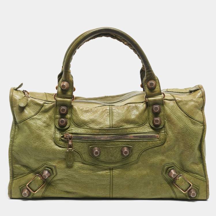 Pre Owned Balenciaga Kiwi Green Leather GGH Work Tote