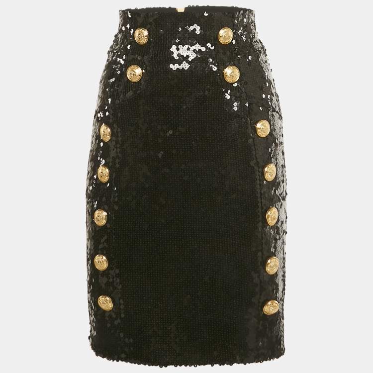 Pre Owned Balmain Black Sequin Button Detail Mini Skirt M