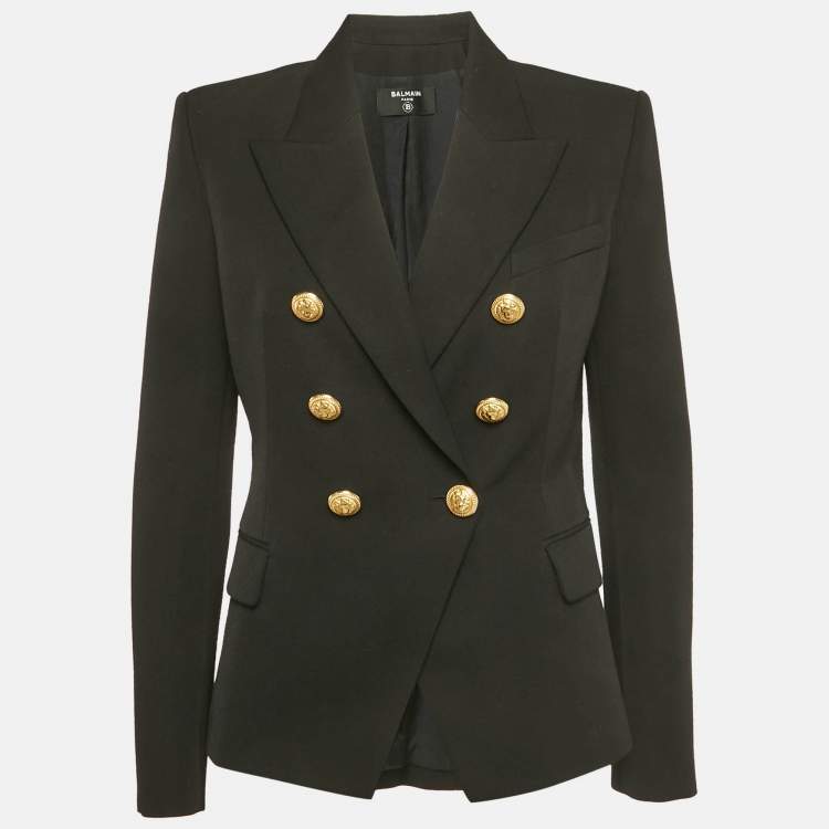 Pre Owned Balmain Black Wool Double Breasted Blazer L