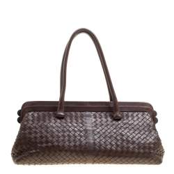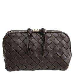 Bottega Veneta Dark Brown Intrecciato Woven Leather Frame Pochette