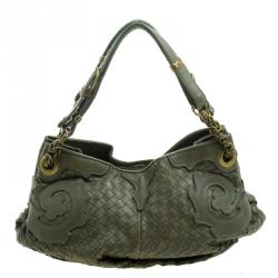 Bottega Veneta Brown Tiger Stripe Intrecciato Leather and Snakeskin Trim Medium Veneta Hobo