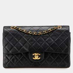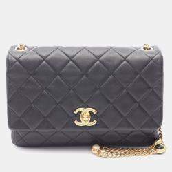 Chanel Matelasse Chain Shoulder Bag Lamb Sheep Leather Black