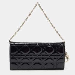 Dior Black Cannage Patent Leather Medium Caro Shoulder Bag