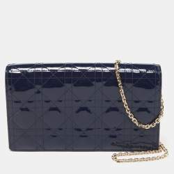 Dior Black Cannage Leather Lady Dior Wallet On Chain