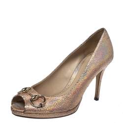 Gucci Blush Pink Leather Horsebit Platform Peep Toe Pumps Size 36