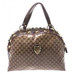 Gucci Beige/Brown GG Canvas and Leather D Ring Hobo