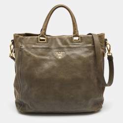 Prada Grey Saffiano Lux/Soft Leather Convertible Tote