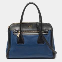 Prada Blue Saffiano Leather Small Galleria Double Zip Tote