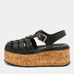 Prada Black Suede Peep Toe Platform Ankle Strap Sandals Size 40