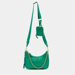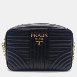 Prada Black Gaufre Nylon and Leather Braided Handle Hobo