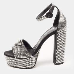 Prada Black/Silver Satin and Crystals Platform Sandals Size 39.5