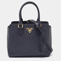 Prada Navy Blue Saffiano Lux and Soft Leather Small Tote