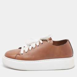 Prada Brown Leather Platform Low Top Sneakers Size 36
