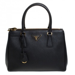 Prada Black Saffiano Lux Leather Small Double Zip Tote
