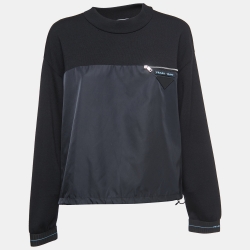 Prada Black Knit & Nylon Logo Patch Sweatshirt M