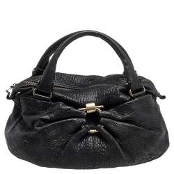 Salvatore Ferragamo Black Leather Gancio Flap Satchel