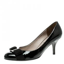 Salvatore Ferragamo Black Patent Leather Vara Bow Pumps Size 37