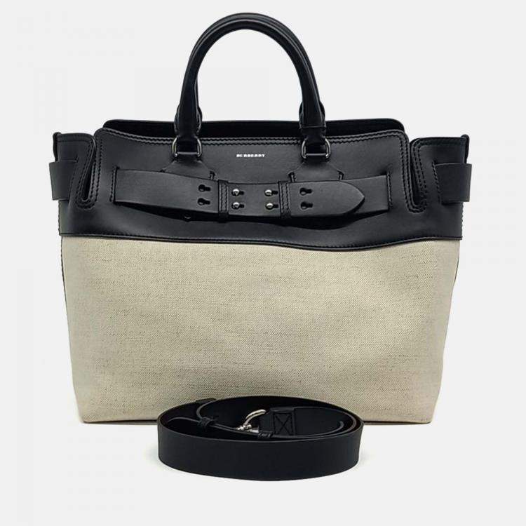 Burberry Beige Black Canvas and Leather Canvas Belt Bag Medium