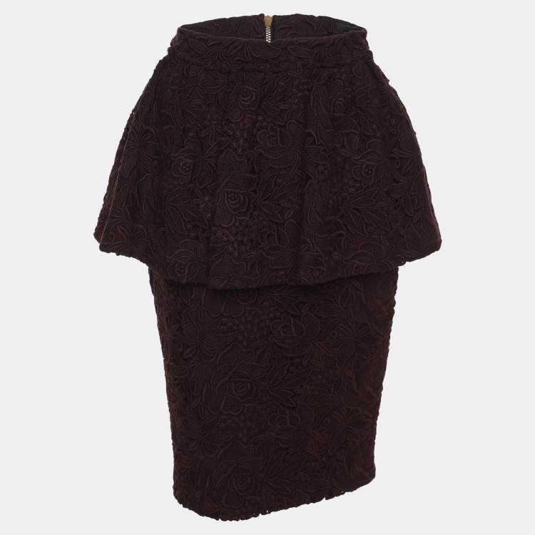 Pre Owned Burberry Burgundy Lace Pencil Skirt S