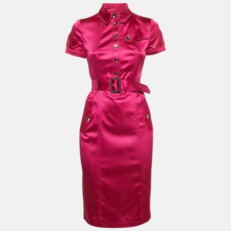 Burberry London Pink Satin Belted Pocket Detail Sheath Dress S