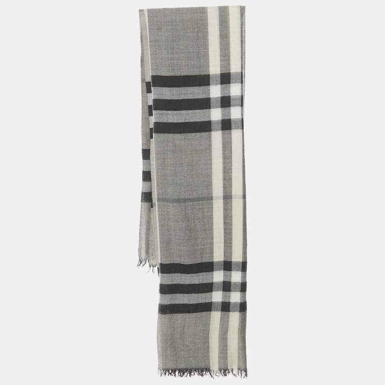 Pre Owned Burberry Monochrome Checked Silk Blend Stole