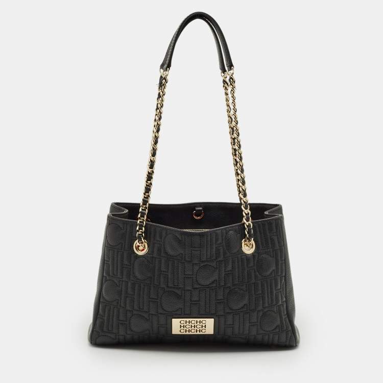 Carolina Herrera Black Monogram Leather CHHC Chain Tote