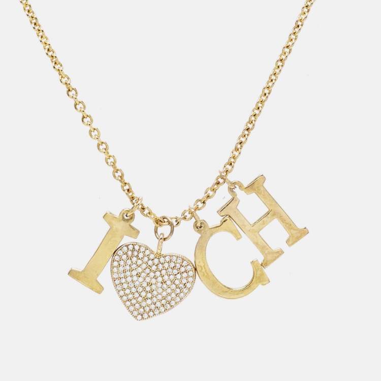 Pre Owned Carolina Herrera CH I Love CH Crystals Gold Tone Necklace