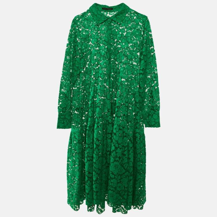 Pre Owned Carolina Herrera Green Lace Midi Dress L