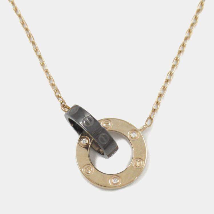 Pre Owned Cartier 18K Rose Gold Diamond Ceramic Love Necklace