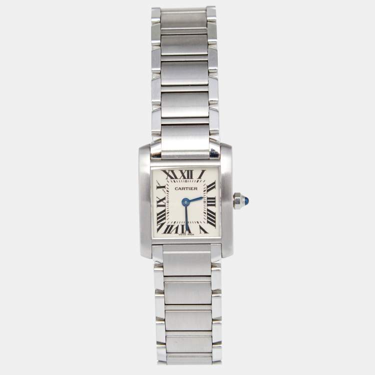 Cartier White Stainless Steel Tank Francaise 2384 Women's Wristwatch 20 mm