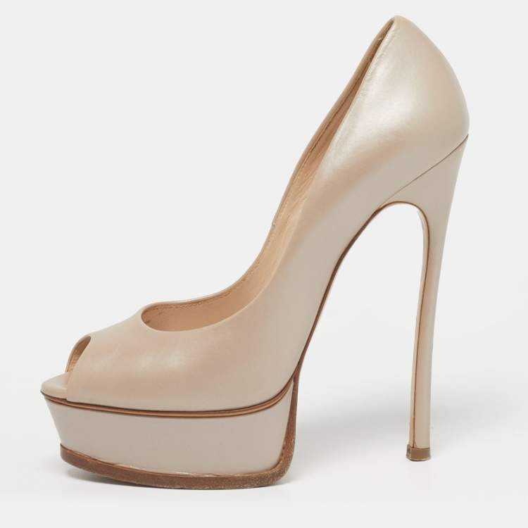 Casadei Beige Leather Peep Toe Pumps Size 38