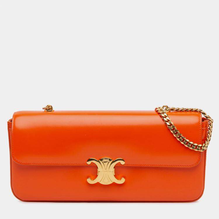 Celine Orange Smooth Calfskin Triomphe Chain Shoulder Bag