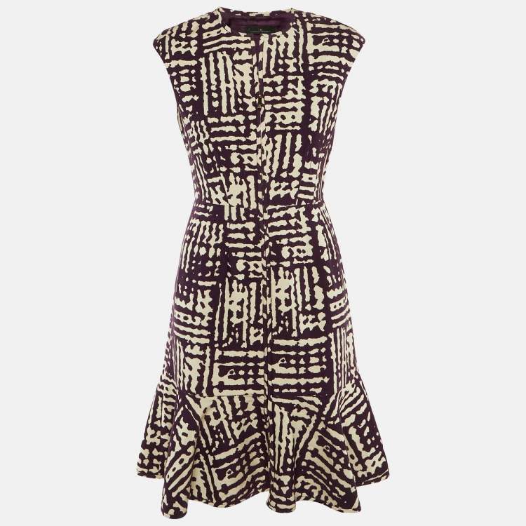 Pre Owned CH Carolina Herrera Purple /White Patterned Knit Flounced Hem Short Dress S