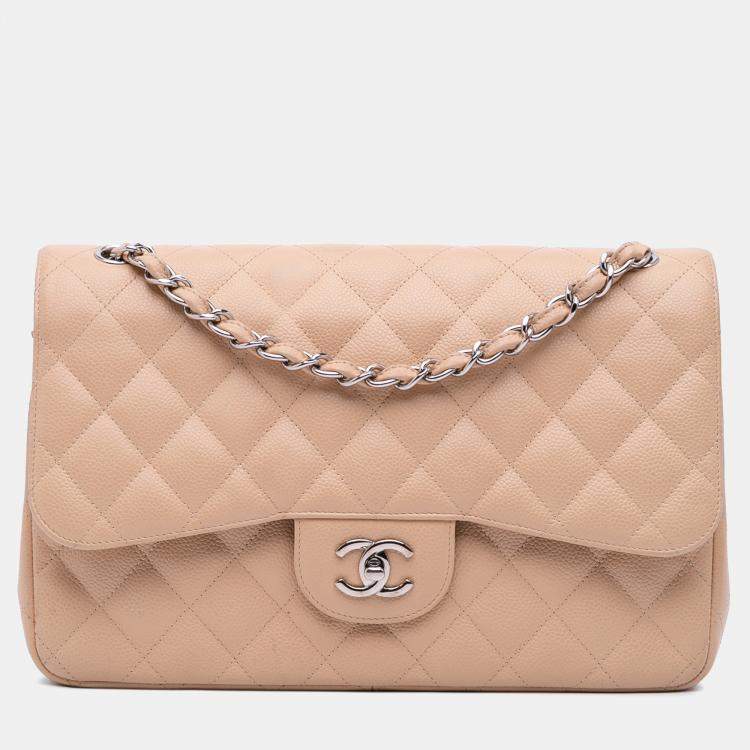 Chanel Beige Jumbo Classic Caviar Double Flap Bag
