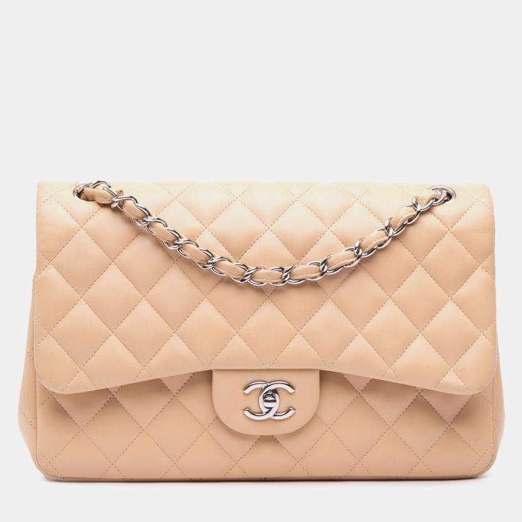 Pre Owned Chanel Beige Jumbo Classic Lambskin Double Flap