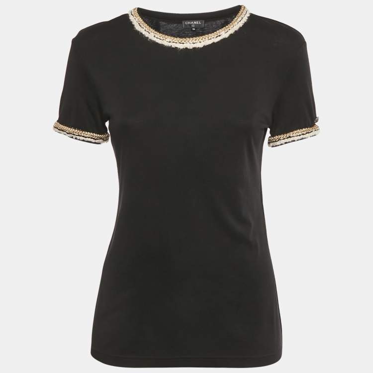 Chanel Black Braided Trim Jersey T-Shirt S