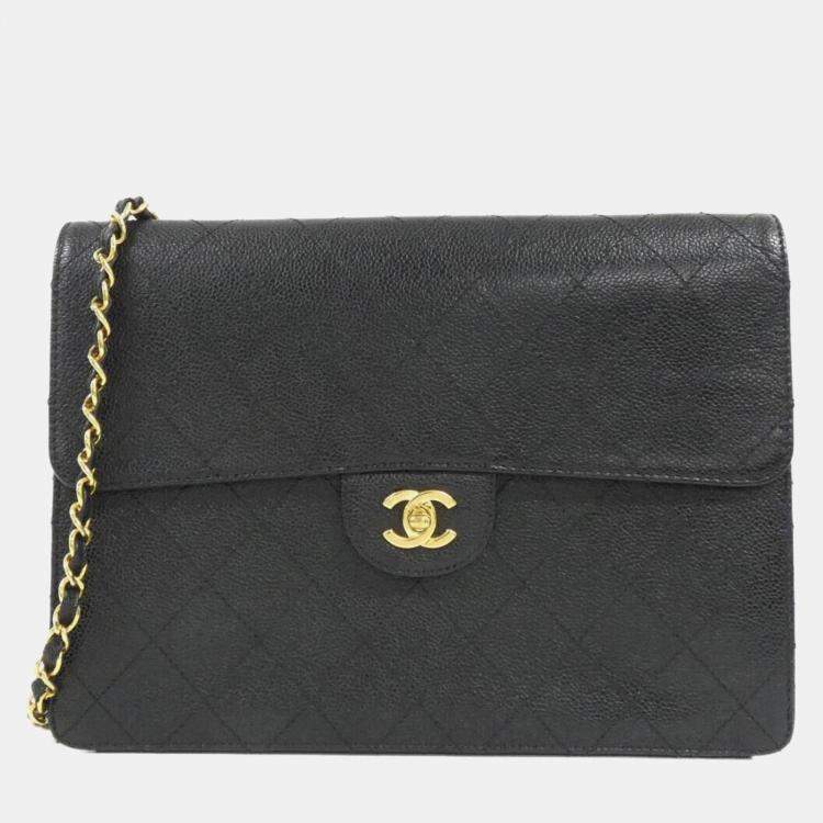 Pre Owned Chanel Black Calf Leather Shoulder Bag